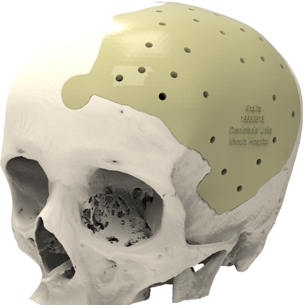 Custom PEEK implants enabling cranial structure reconstruction.